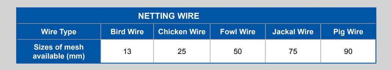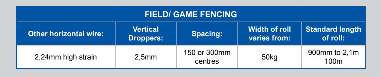 Available in lightly or fully galvanised wire | Wire diameter vary from 2mm to 4mm Width of mesh varies from 900mm – 2,4m | Standard length of roll: 30m or any other size requested