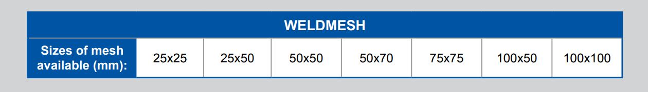 Available in lightly or fully galvanised wire | Wire diameter vary from 2mm to 4mm | Width of mesh available from 900mm – 5m | Standard length of roll: 30m